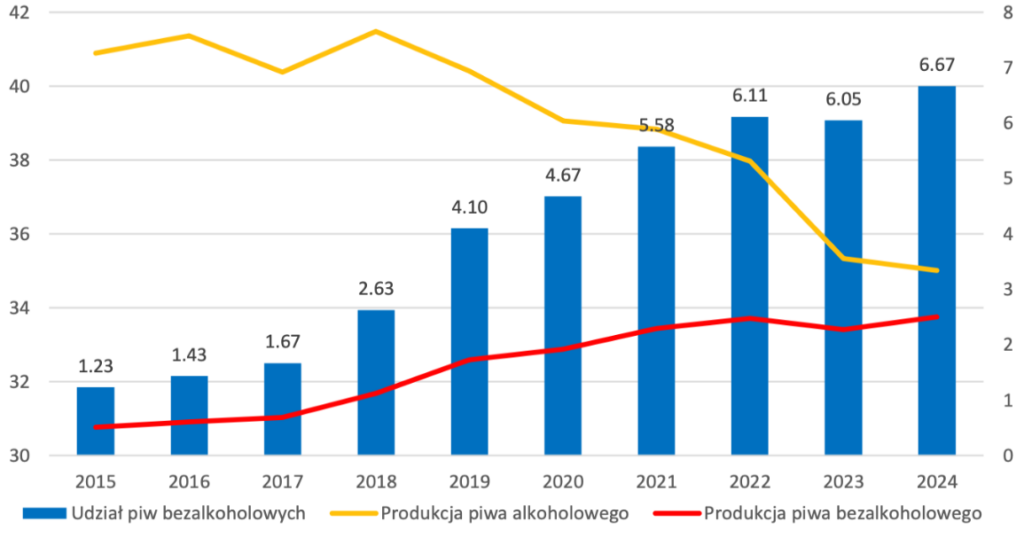 All data indicates that trends in alcohol consumption in Poland are highly positive, and Poles are drinking less on their own initiative. This is largely reflected in falling beer consumption. At the same time, the market for non-alcoholic beers has been developing rapidly for several years, and such products increasingly replace alcoholic beer.