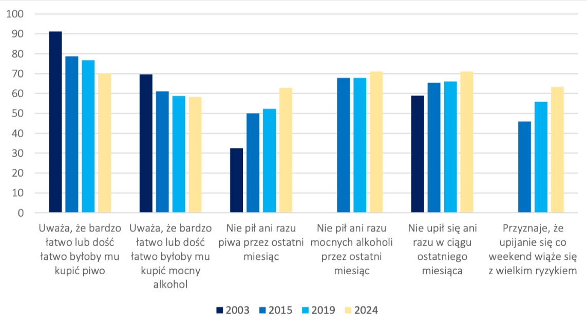 Figure 4: ESPAD study results among Polish 15- and 16-year-olds in 2003 and 2015-2024 (percentage of respondents who…)