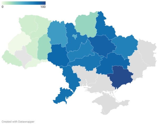 Figure 5. “It is dangerous to work” by oblast, % of respondents